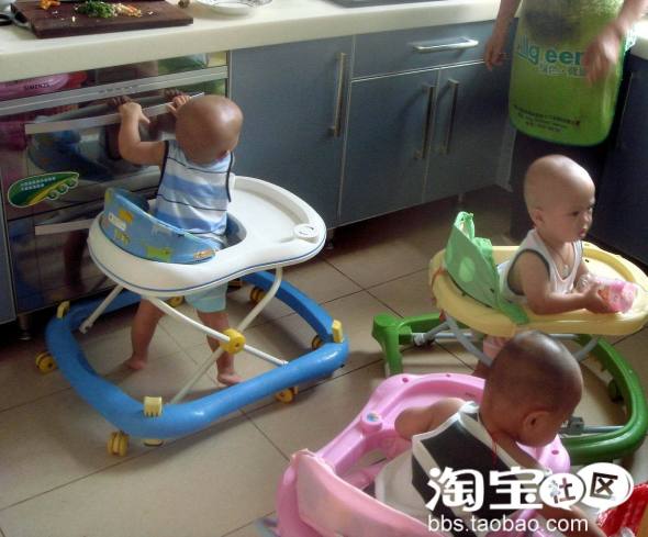 小家伙在家的时候除了睡觉是安静的,醒来就到处爬到处跑,看看这群孩子都进厨房了