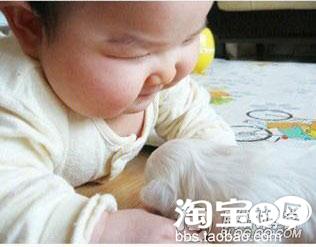 编后语:多么可爱的宝宝,多么可爱的小狗,两个可爱的小精灵结合成了超级可爱的图图,我真的很佩服摄影师的想象力,竟然给这样的图片想到了如此雷人标题。其实生活中的趣事真的好多,只要我们用心去发现,快乐无处不在。