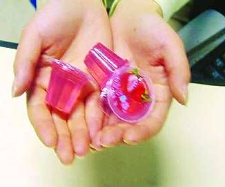 控制给孩子吃果冻的量,最好帮宝宝把果冻弄成很小很小块的。