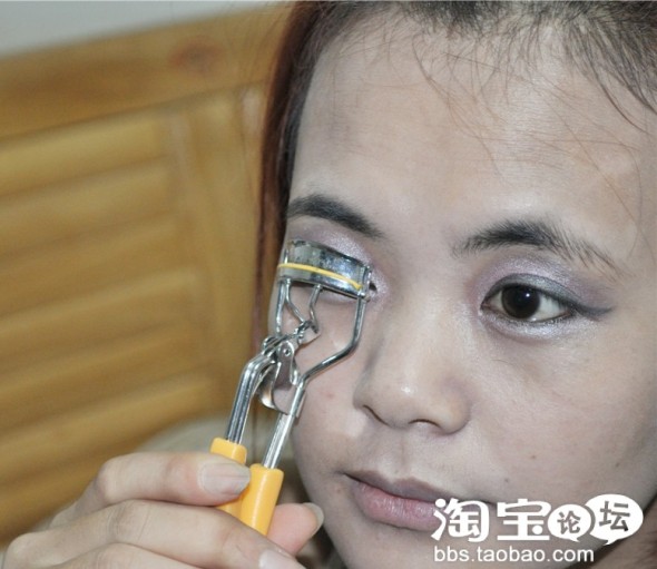 完成,下面是夹睫毛刷睫毛,照片光线不对,其实并没有白的那么不自然