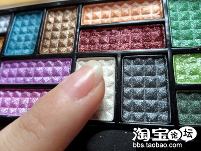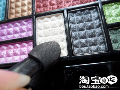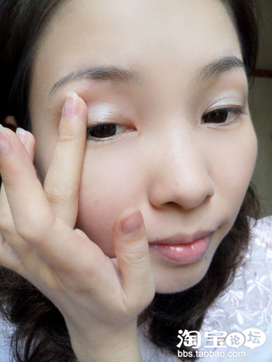 第一步,用干净的手指沾取mother home眼影中的银白色在眼皮上打底