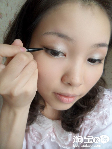 接下来用眼影棒再次沾取mother home的银白色眼影,刷在下眼皮前半部分。