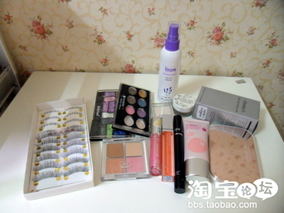 这次用的主要工具:富士泉樱花肽BB霜,卡姿兰粉色粉饼,火烈鸟睫毛膏,mother home十六色眼影,蒙巴拉眼影和唇彩,color zone唇彩、眼影和眼线膏,伊芙黎雪修容腮红,honeys睫毛夹,IDUN卸妆油和台湾手工假睫毛,都是有口碑的评价化妆品,适合广大初学者使用滴!