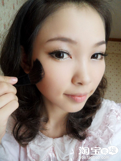 刷上眉粉,眼妆的部分就完成了