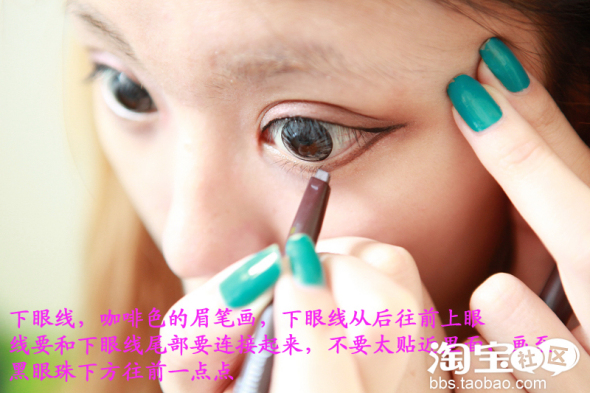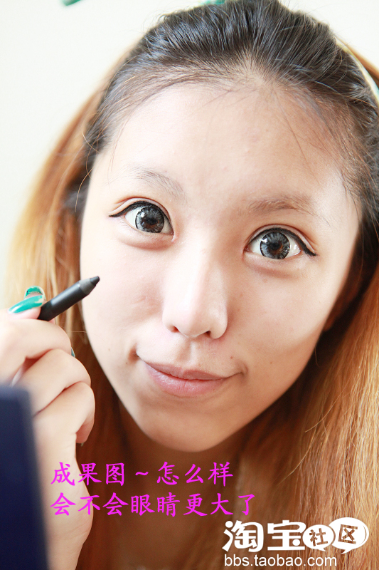 眼线液会有些反光 所以还是用眼线笔再上一层眼线 有哑光效果唷