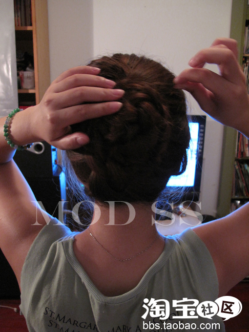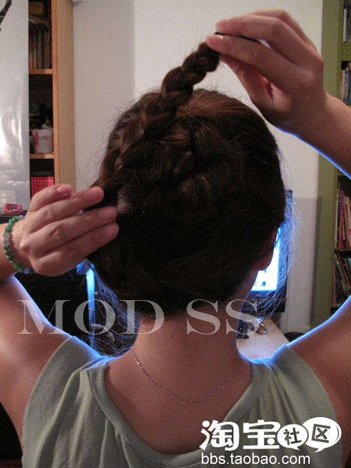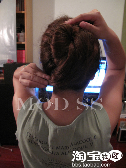 和刚才一样 顺时针围着上半部分的发髻绕一个圈
