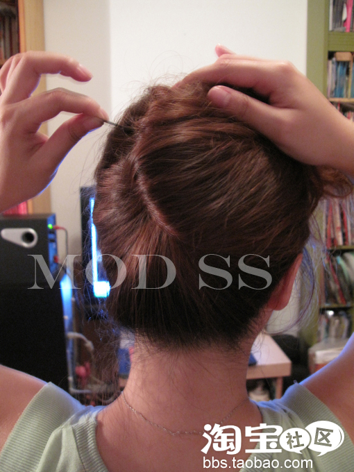 然后绕一个圈 把发尾藏起来 用钢卡固定住
