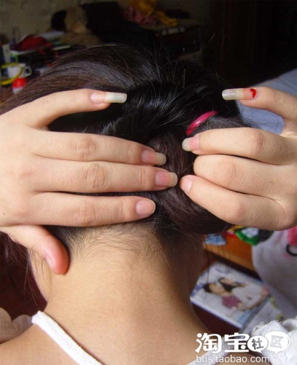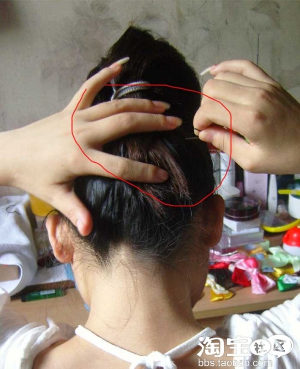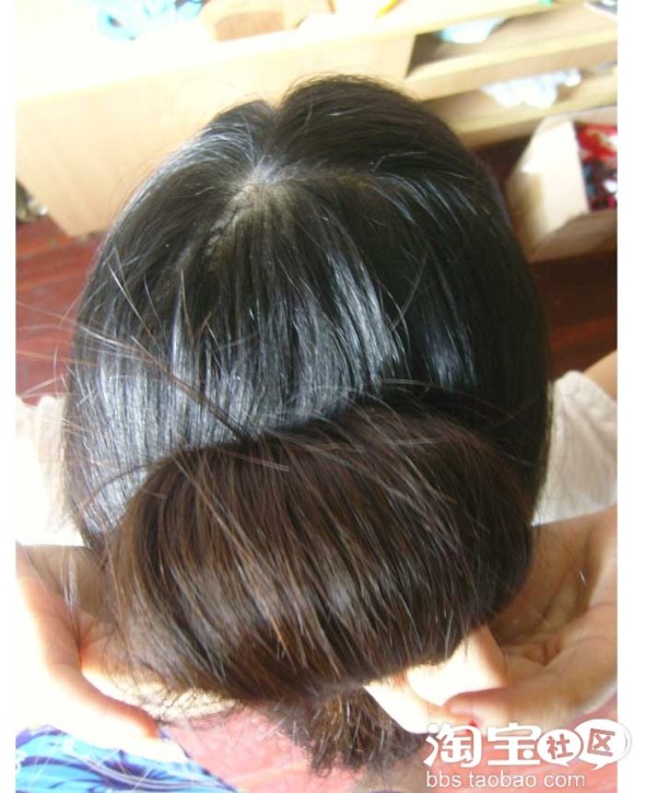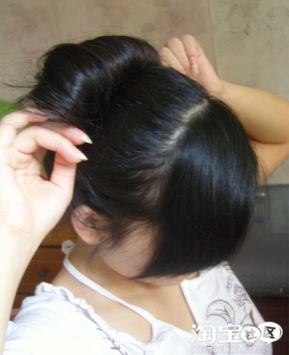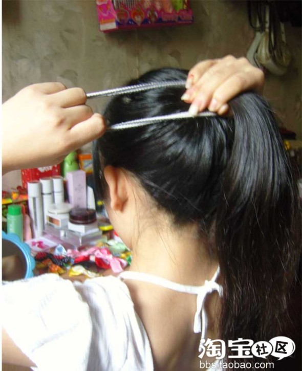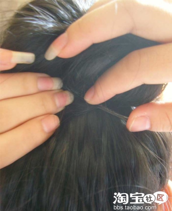 2.在发根的地方掏个洞,不要把头发弄乱喽哦!