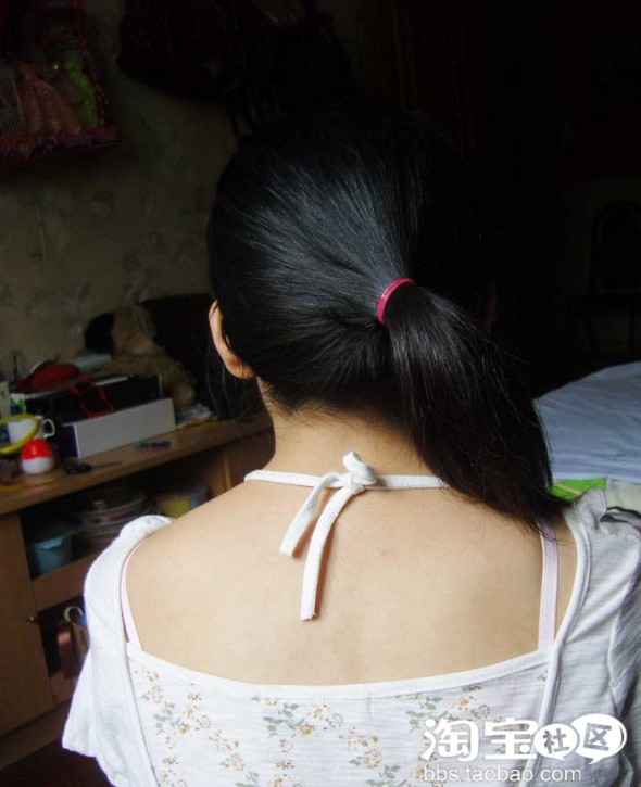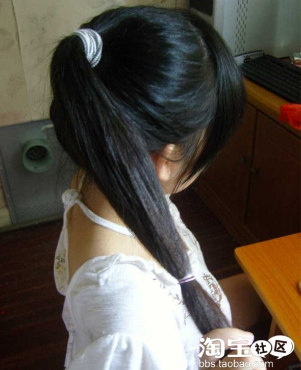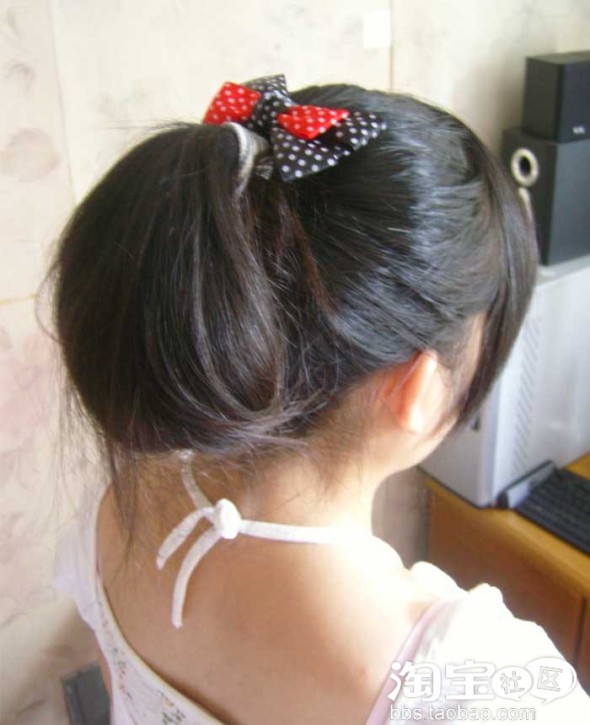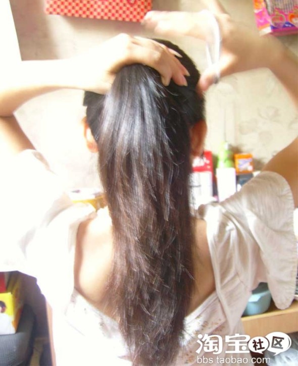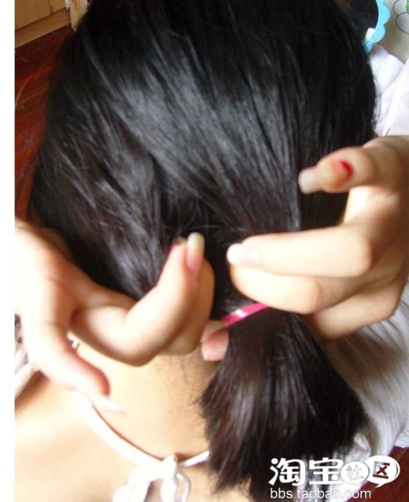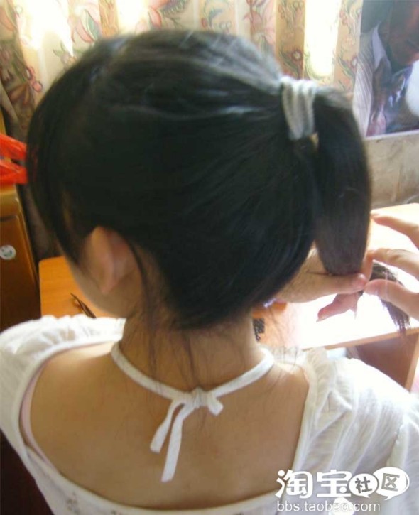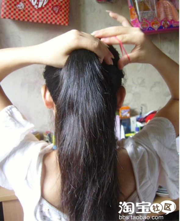 1.用皮筋把头发扎成马尾,高低随便哦!