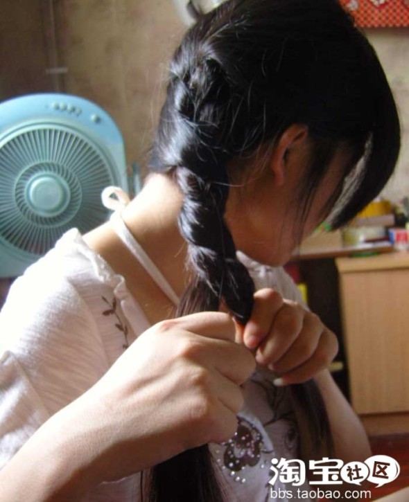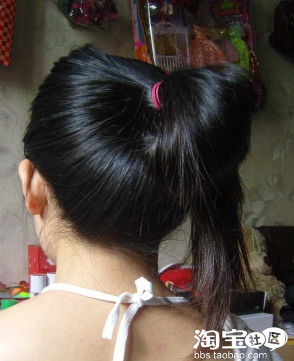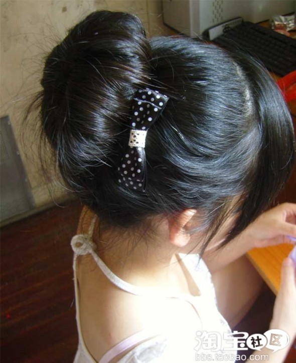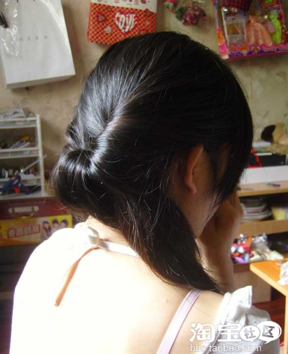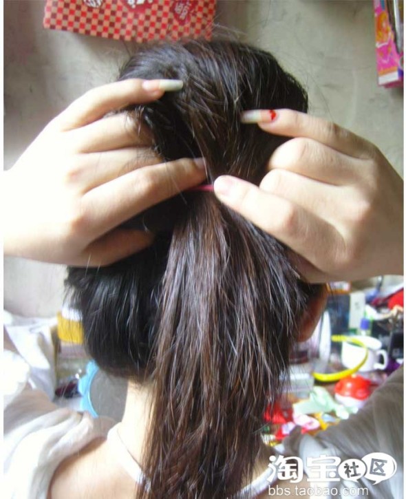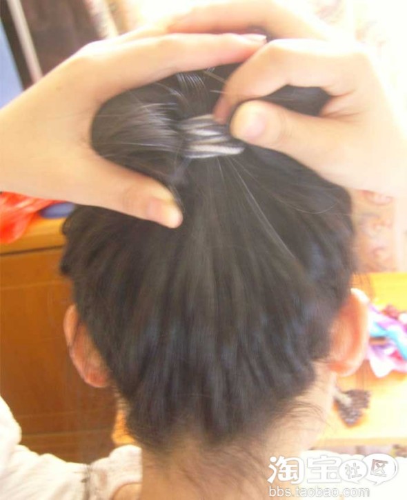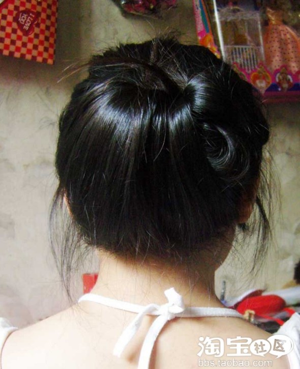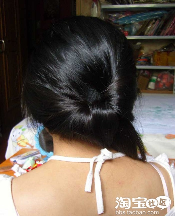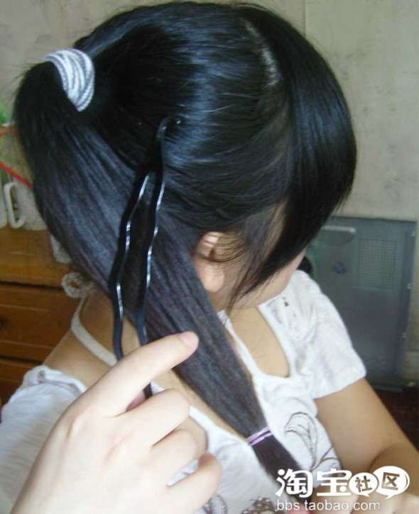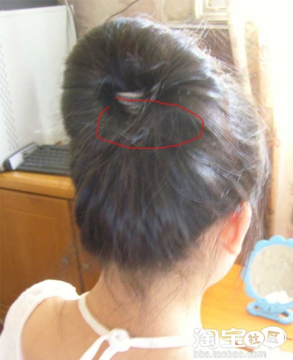 5.把剩下的头发都塞到那个洞里面哦!要有规律哦!要不然不好看的!