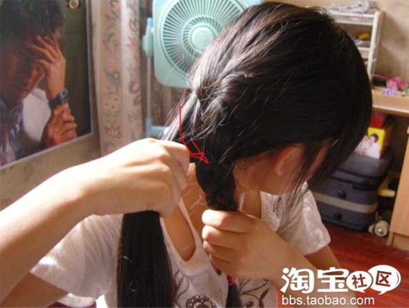 把编好的辫子藏起来,慢慢的塞到里面去哦!里面用夹子固定住就行啦!