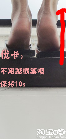 抬高后 教练说只要持平就可以 不过特别踮高 特别踮高会有肌肉的小腿肚出现