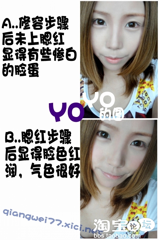 是不是一下子就摆脱了惨白的脸蛋呢~~~~~~~让自己多了点色彩的感觉~~~~