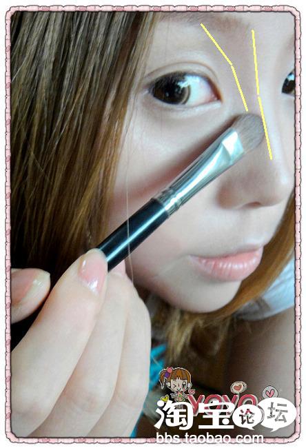 深色扫在鼻子的侧面~~~~与眉毛衔接~~~~~鼻子的最高处要空出来~~~~~因为那里是高光区域~~~