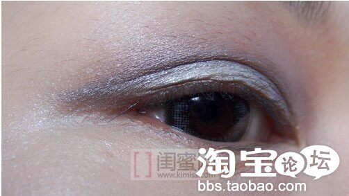 首先是眼妆,先来分析下小佳的眼睛吧,小佳素双眼皮,但是不是很双的那种,要是画上眼线,基本就看不出来了,今天不用双眼皮胶带,这次希望能让双眼皮明显一点,所以选择在双眼皮上用银色的眼线笔涂满,这样能让双眼皮在视觉上更宽。