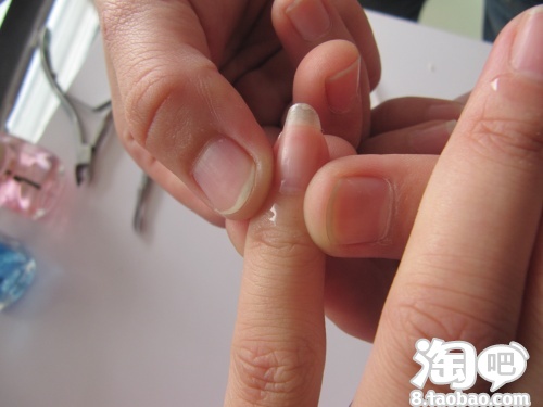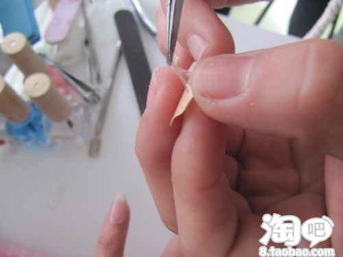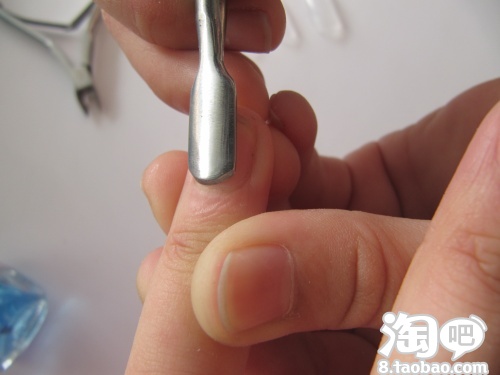 先用钢推把指皮推上去哦~~MM们一定要小心的慢慢推哦~~