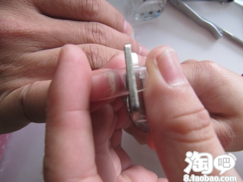 然后MM们就可以用砂条修一下甲片,可以修方形,也可以修圆形哦~~