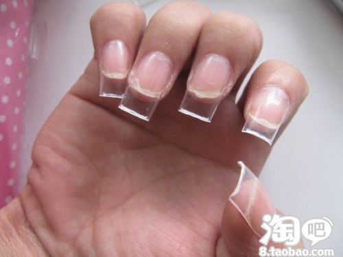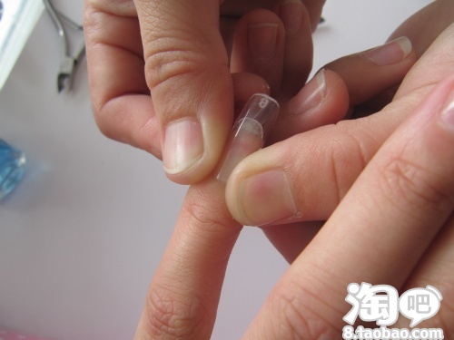 如果自己的指甲太长的话,最好还是剪掉吧~~因为甲片是透明的,自己的指甲太长了会看得到的,而且一不小心长的超过了甲片的长度的话,那就~~~