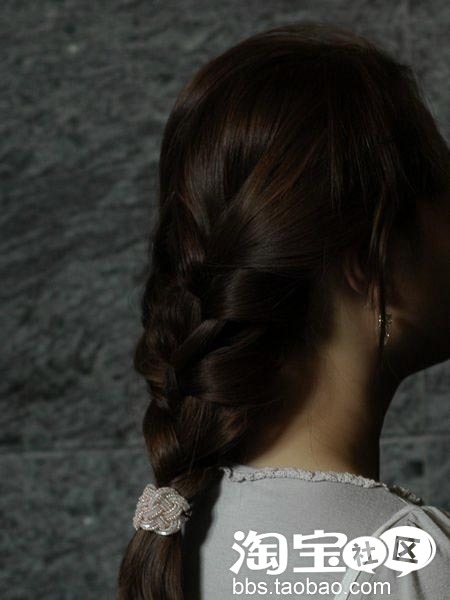 然后把现边的辫子合在一起,编成三股辫就好啦!很简单吧,简单又适用,配上一个小小的发饰,美美的呢!来看看效果吧