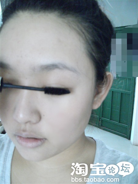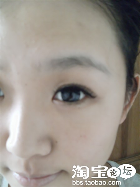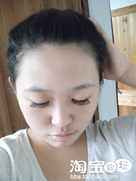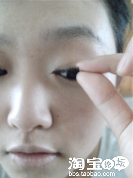 找准位置贴在睫毛根部(因为有照相又化妆,找不好角度,不好意思)