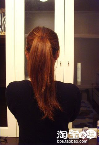 第二部:就是要找一个黑色的小皮筋,抓一个马尾辫。尽量要靠上一些哦。盘出来才会漂亮。
