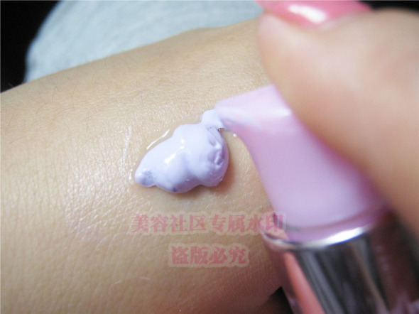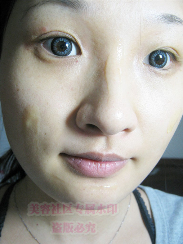 还是用分点法 点点点 再用粉扑涂抹均匀就OK了 紫色能修饰暗黄的肌肤 沫沫因为血虚 所以肤色很黄