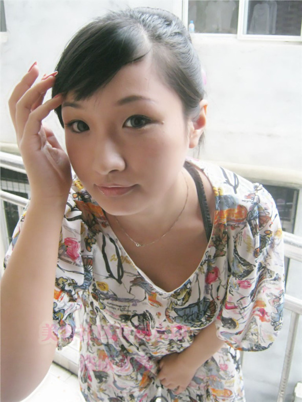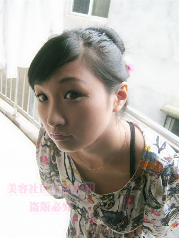不好意思 图片歪了 囧··· 吧下面的碎头发 用个发卡夹起来 装饰一下 嘿嘿