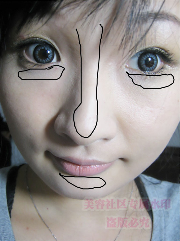 这些地方 要刷提亮 突出脸部的立体感 我不喜欢在鼻子两侧 画阴影 所以就没有画