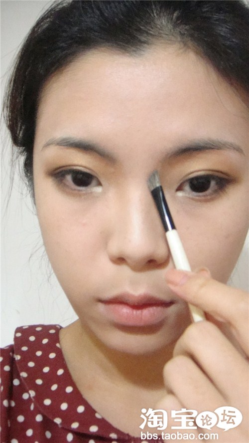 b。用棕色在眼尾以三角的方式向前晕染 塑造立体的眼部