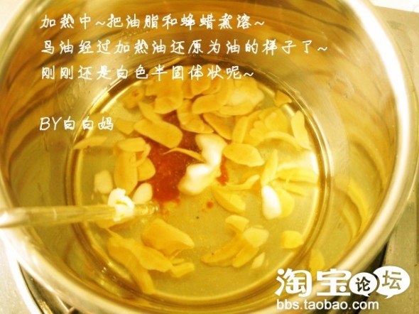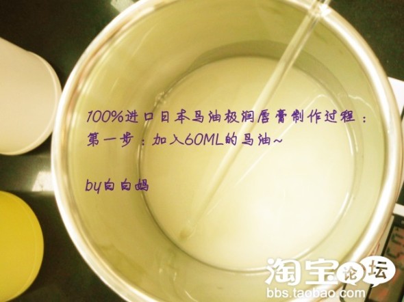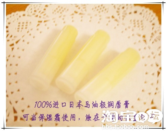 *日本利用独特技术对马油进行了脱臭处理,消除了马油的油腥味,白白妈拿进口的日本马油来制作润唇膏,也可以涂抹在脸上,因为马油对皮肤实在有太多说不出的好处啦~~~~日本的女人超注重保养,马油类的保养品可是大受欢迎的哦!