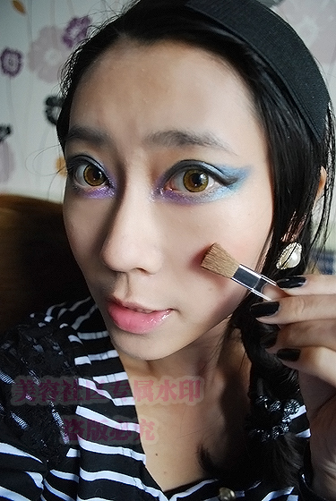 6.腮红太高:腮红和眼部的化妆连在一起,太高不但失去面颊的轮廓,而且使眼部化妆失色