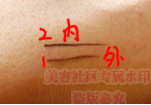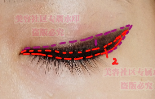 内眼睑:眼头细,中间宽,眼睛尾部也要比较宽(如图)