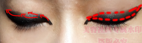 闭眼睛,方便各位学习。眼线的方向基本都是向上仰,类似蝴蝶妆的感觉。