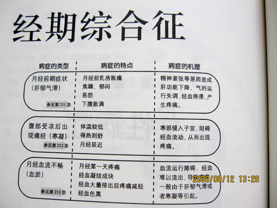 爱美的MM每个人都知道,自己“好朋友”是否正常是关系到自己身体健康美丽的大事情,可到底是什么造成“好朋友”不友好呢?还是需要好好了解一下哦:)不要再安慰自己什么“结了婚就好了,生了孩子就好了!”多花些时间了解自己的身体倾听自己身体的声音是最重要的哦!我自己就是那种第一天痛的要死,之后就还可以的那种,看了这个书以后才知道,是因为自己血瘀造成的,要多吃活血的DD,比如韭菜、大蒜、荞麦面、桔子(怪不得我那么喜欢桔子)嘻嘻,还有就是注意腹部的保暖咯:)