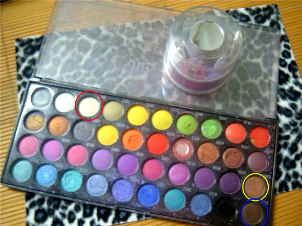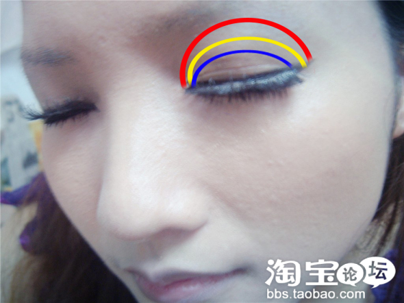 红黄蓝色圈圈圈起来的在眼睛相应的位置擦上~