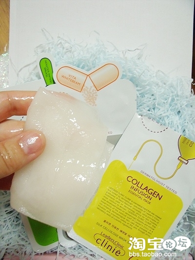 这个也是在一个网站上看一个MM介绍的 逛街的时候偶然看到就买下一个试试 价格 算是中等 先是用的胶原蛋白的摸袋子的时候 感觉就是精华液特别的多 记得MM说过 面膜纸是蚕丝做的15分钟揭下来 脸上摸起来很滑 很有弹性 精华液吸收的饱饱的是不是很多的精华液 大家可以试一下 效果真的很好可莱丝面膜好了 最后 发张照片结给尾巴希望帖子对MM们有帮助喔