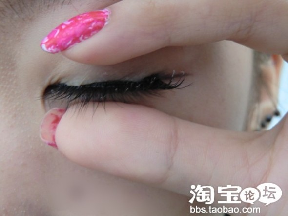 这次是用下垂眼的假睫毛.眼头短眼尾长.