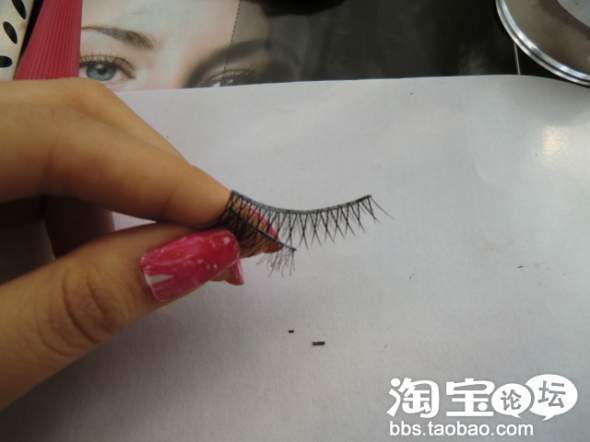 然后把自然的假睫毛粘到一副假睫毛的尾端