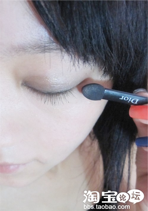 下眼尾的地方 在用黑色眼影描化一下 眼部轮廓会很明显的增大