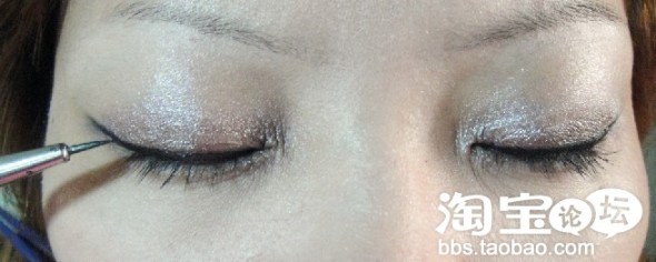 眼线膏打底先化一层,再用眼线液描一下~(这样不容易匀染)从前往后画哦~