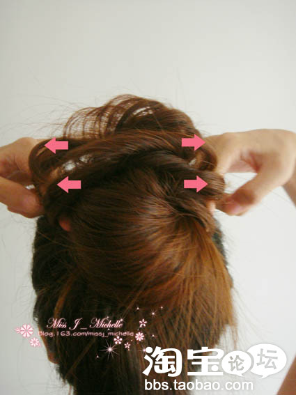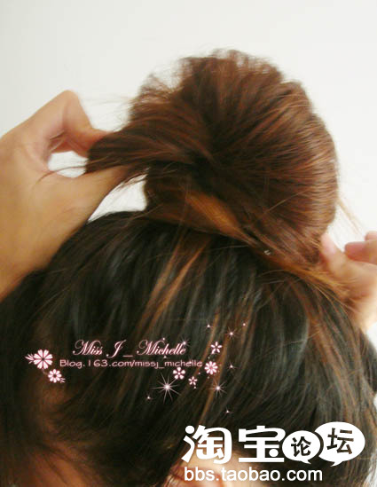 整理。盘完发后,要用手指伸进发圈,上下整理头发的均匀程度,这样出来的效果才会上下均匀,比较好看哦