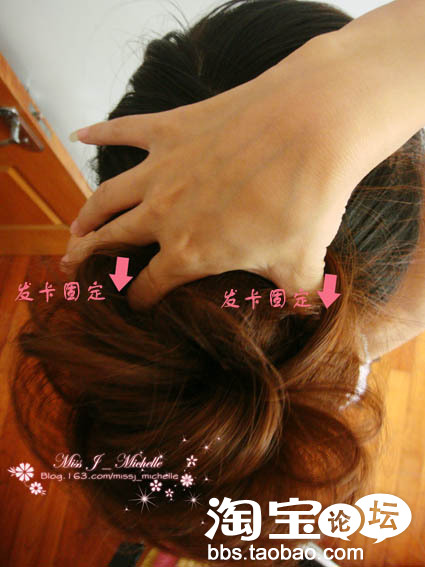 歪歪一般用四个就可以固定住了。左右各两个,分别向上插入和向下插入。注意:黑发卡固定的是拽出来的发圈,与贴在头皮上的头发夹在一起来固定就可以了!(头皮上的头发·哈哈哈``这么说好奇怪`不知道大家听明白没?)