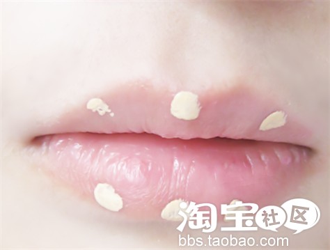 下面是嘴巴了 先用粉底在唇部点6个点点