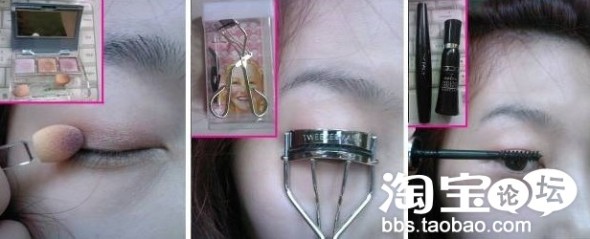 遮瑕完毕就改进行一些淡妆的修饰了,素颜的话,就应该使用打底色地的眼影,首先这种颜色很适合东方人,而且是百搭的眼影,其次棕色在偷偷放大你眼睛的同时,也不容易让别人看出来哦~最后在画上一点点睫毛膏其实就很不错啦~