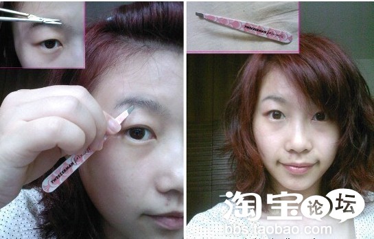 怎么样,把眉毛秀出眉峰和眉尾来是不是显得精神很多呀!哈哈。有些MM可能不敢用眉夹,因为觉得拔眉很痛,有时候拔到一半还断了,或者拔着拔着眼圈就红了,或者拔完了眼皮肿了,那么我很有责任心的告诉你,那是因为你使用的拔眉工具不好,我原来已是在小摊上买的眉夹一类的,觉得都差不多,但是使用劣质眉夹因为咬合不够密实,所以才会出现上述种种状况。后来我到benefit专业的眉吧购买的眉夹,明显好用N倍,真的,一点都不疼,用着还顺手。