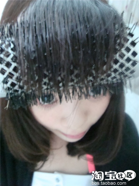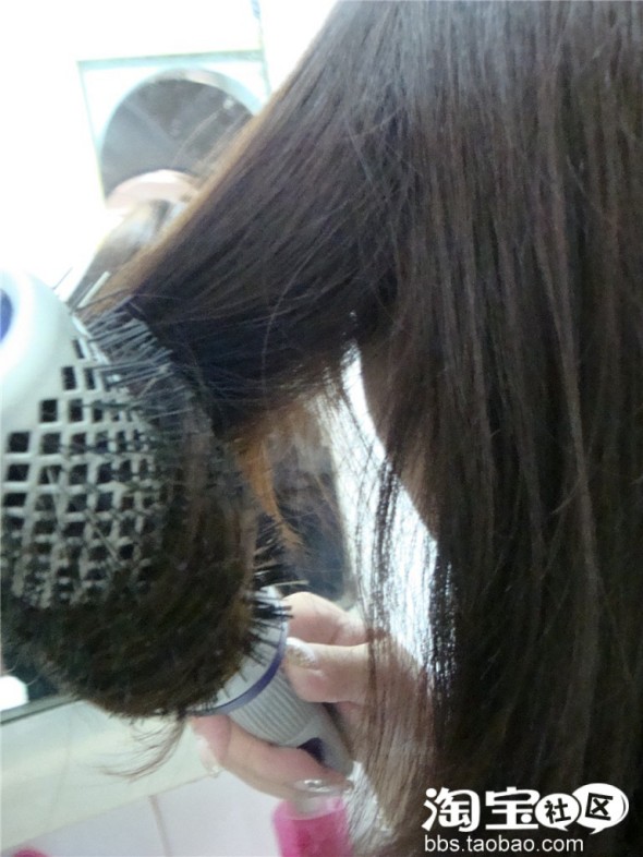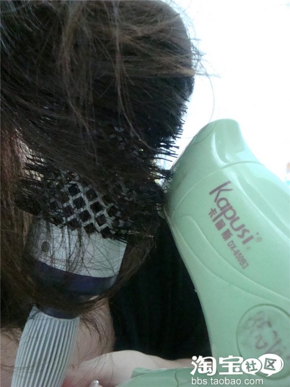 等两边的头发都吹好以后再用卷发梳卷刘海 然后用风筒定型