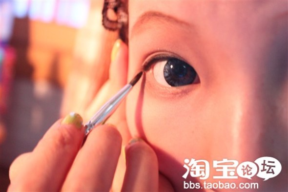 不要觉得眼线睫毛完了就OK了哦.晕染的效果是很强大的,虽然妆容会浓一点,晕染处理的好的话,整个妆容会更自然一些.用眼影晕染很OK,色系选择稍深一点的.棕黑色.刷在上眼窝.眼尾和下眼尾处..