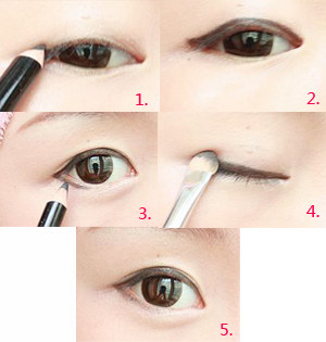 4.最好用眼影刷推开将眼线边缘自然地微微晕开,形成渐进,会让人看起来更舒服。