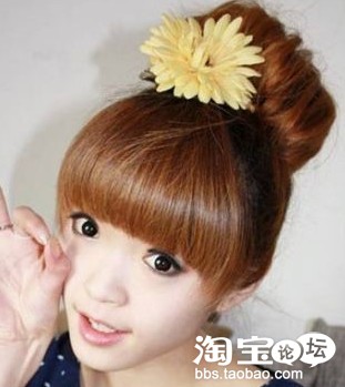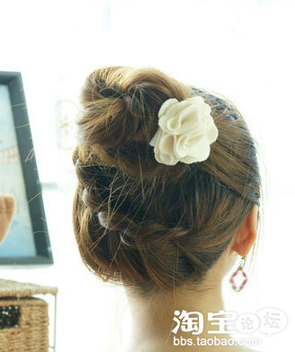 把碎头发用发卡一一固定好,让表面看上去比较整齐,再配上可爱的大花发饰,让你成为初冬最美丽的女孩!