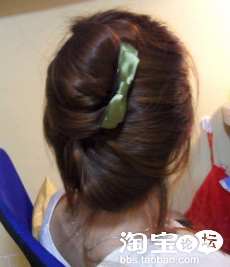 把发丝拉成如图效果,并用发卡固定好。